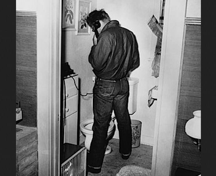 We’ve seen many photos of James Dean looking sexy and stoic. But we’ve never seen any like this. I didn’t know he was such a multi-tasker. Talking on the phone while taking a wizz is no easy feat. Most remarkable was that he left the door open so celebrity photographer Frank Worth could snap a pic of it. You can hang this print in your bathroom for inspiration. It will run you $899. If pissing photos are not quite your style there are more Frank Worth photographs of James Dean, Marilyn Monroe, Frank Sinatra and others for sale on Fab.com.