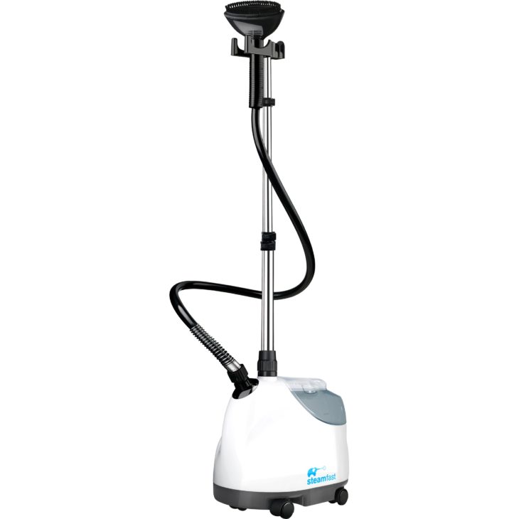 The Model SF-407 from Steamfast is yet another excellent appliance for all of your steaming needs. This steamer, however, is much larger and less compact than the other ones we’ve reviews because its purpose is to do heavy duty clothes steaming. With a tank size of 40 ounces, this steamer can go as long as 75 minutes before needing a refill. It takes less than an hour to completely heat up the entire tank and it goes on four wheels. The Model SF-407 is a 1500 watt garment steamer that can steam anything you set out before him. The steamer comes with a 4.3 feet hose that allows you to operate it easily.