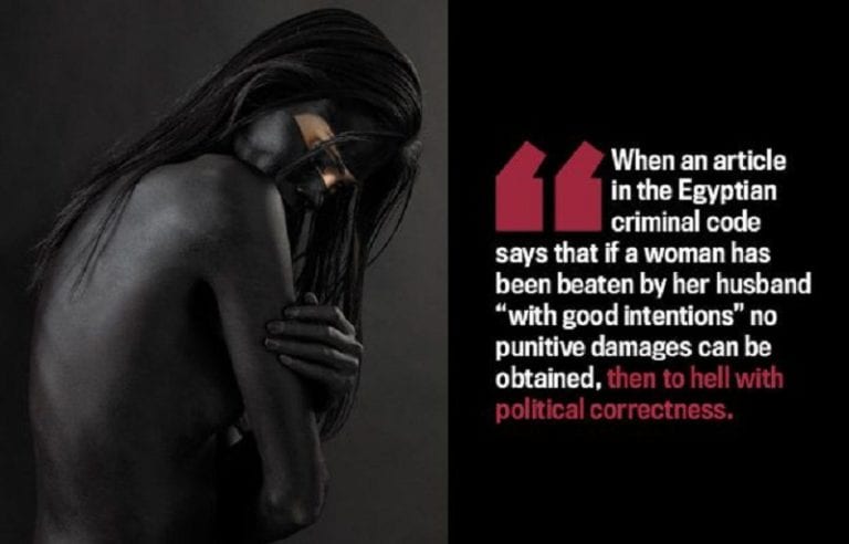 But images used for the piece are also causing controversy: an attractive, naked woman is covered in body paint made to look like a niqab (a body-covering veil), with only her eyes showing. Newsweek’s Tumblr lauded the images as “powerful,” while a Tumblr blogger who goes by the name That Sassy Arab chastised the magazine: “Nope, newsweek [sic], this is not stunning and powerful, or awesome. This is highly offensive and completely misguided.” Other critiques of the images used by FP, and the article by by Eltahawy hereself, are here, here and here.
