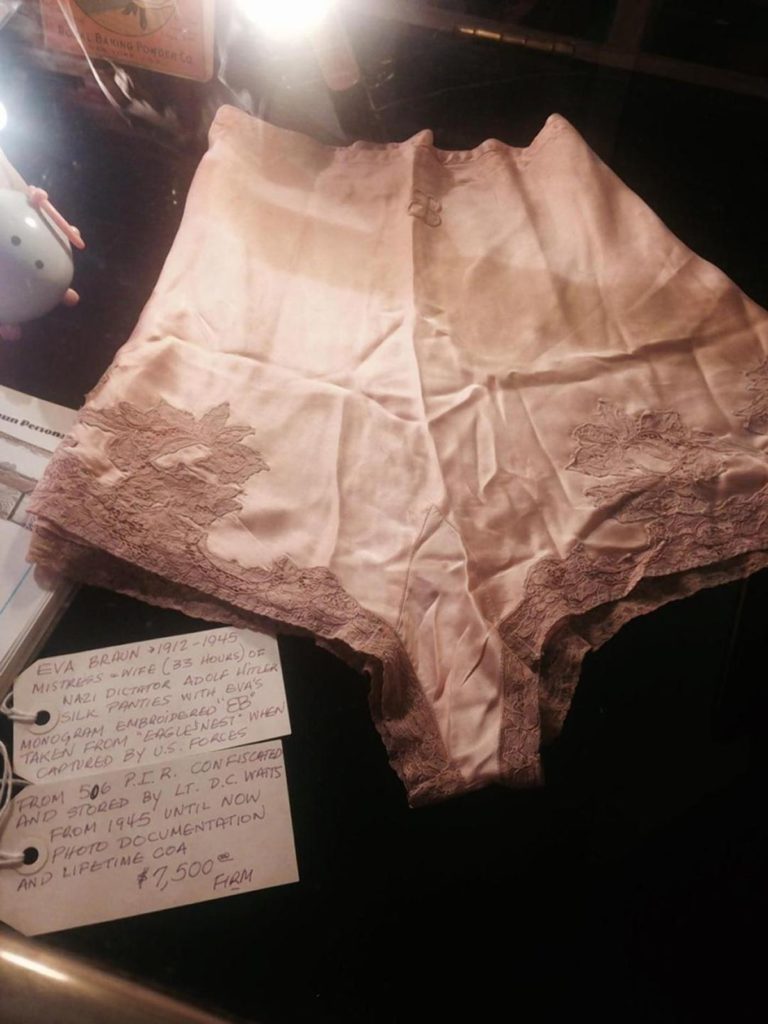 Somehow the (probably) panties of Hitler’s mistress and then wife, Eva Braun, ended up in a tiny vintage store in northern Ohio. Also, Probably Panties is the name of my new 1960s style French ‘Ya-Ya’ band.