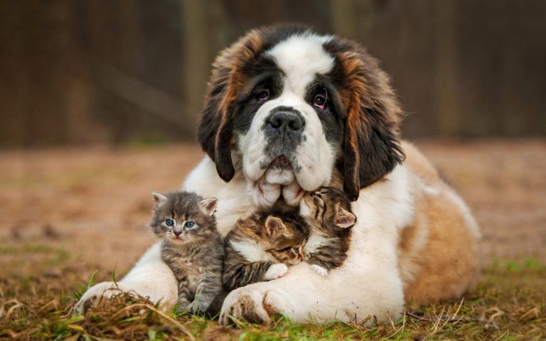 Everybody deserves a kitten of their own to love, pet and cuddle with. Even St. Bernards. Here, Abby patiently lets this gray kitten walk all over her — and even lets the kitten attempt to suckle from her paw.
