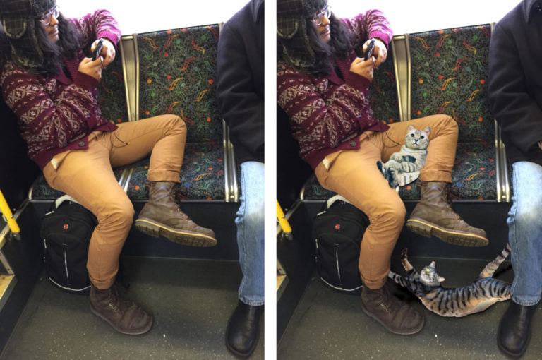 Those among us who have ever watched a dude spread his legs across the length of three seats on public transportation or spent so much as five seconds peeking at Men Taking Up Space On The Train (so, everyone) have spent many an afternoon pondering why it’s so difficult for some guys to sit in just one seat. At last, the internet has found an answer — they’re Saving Room For Cats!