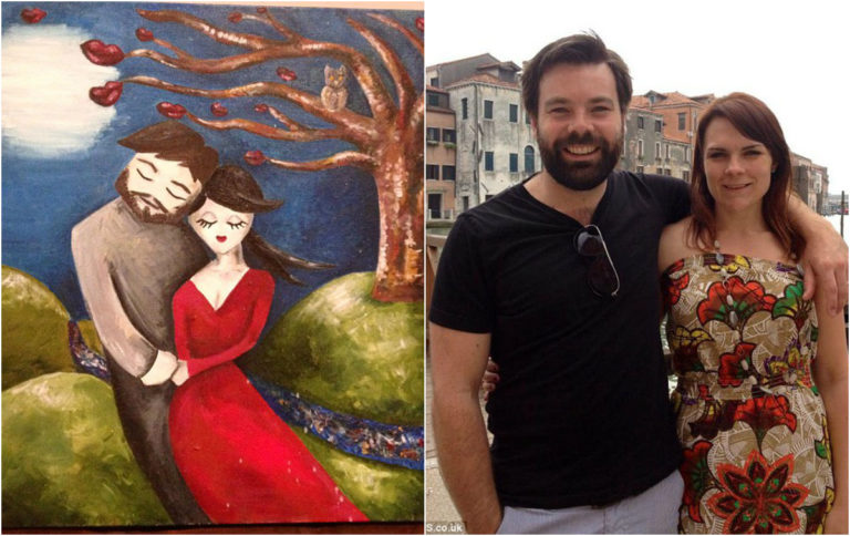 Cut to two months later, Chloe joined an online dating site and began messaging with Michael Goeman. When they finally met in person, she was so blown away by his resemblance to the man in the painting that she hid the work of art under her bed, fearing that Michael would think she was some kind of cray stalker. “About a week later, I mustered up the courage to show him and although he looked a bit confused, he saw the funny side when I explained what had happened,” Chloe explained.