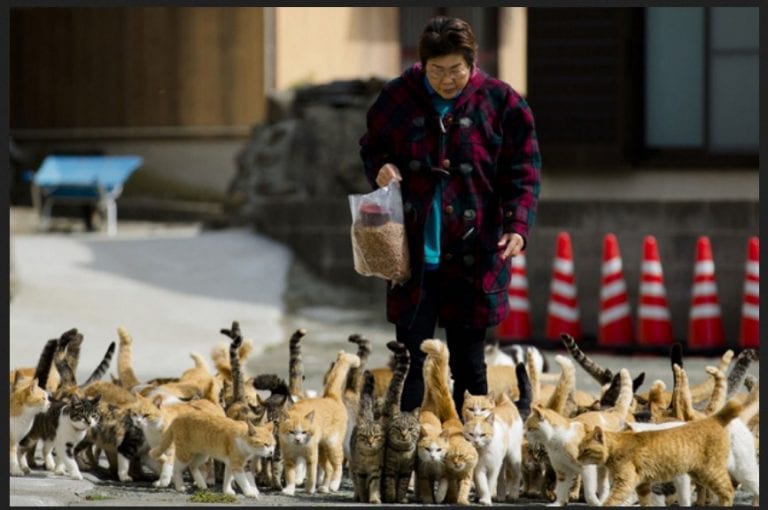 For the record,  I love cats. I have a cat. I enjoy my cat for what she’s worth, which is sleeping on my bed and throwing up her dinner every now and then and walking away from it. She’s a delight, because pets are good for the body, the soul, the whatever. You’d think that this cat island, in Aoshima, Japan, would be the ultimate in spiritual and mental rejuvenation, but really, it’s kind of a nightmare.