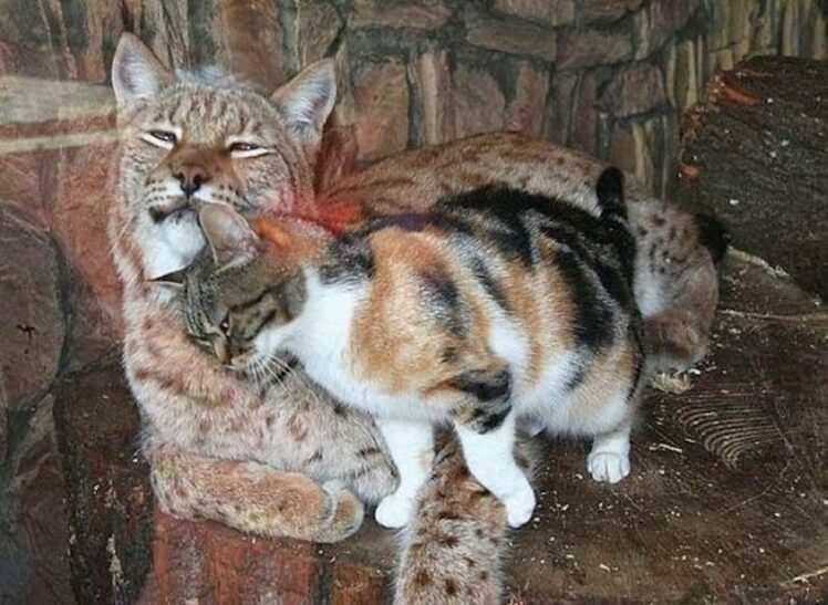 The Leningrad Zoo in Russia became home to a stray calico cat when she snuck on the property looking for food. She somehow found her way into the zoo’s lynx closure and soon became best friends with the lynx who lived there. When the zoo saw how close they were, they decided to adopt the kitty and let the pair live together. The emotional music in this video is a little excessive, but it does help conjure up lots of thoughts about the beauty of nature and the power of BFFdom – and it also just really makes me wish I were petting a cat. [Gawker] [Image via Imgur]